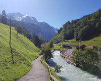 Następnego dnia bardzo szybko przemieściliśmy się do Innertkirchen, skąd pojechaliśmy rowerami do Interlaken. Trasa prowadziła drogami asfaltowo-szutrowymi. Szutry bywały trudne i strome, ale zawsze w idealnym stanie. Widoki zapierały dech w piersiach.